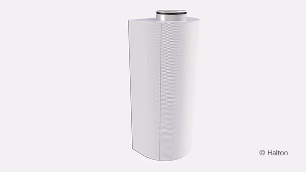 Diffuseur à déplacement Halton ZSC avec façade en tôle d’acier galvanisé micro perforée, revêtue de peinture époxy-polyester de couleur standard blanche (RAL 9003).