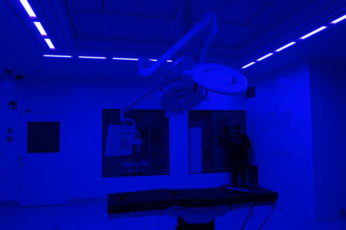 Disinfection blue light integrated into Halton Vita OR Space solution