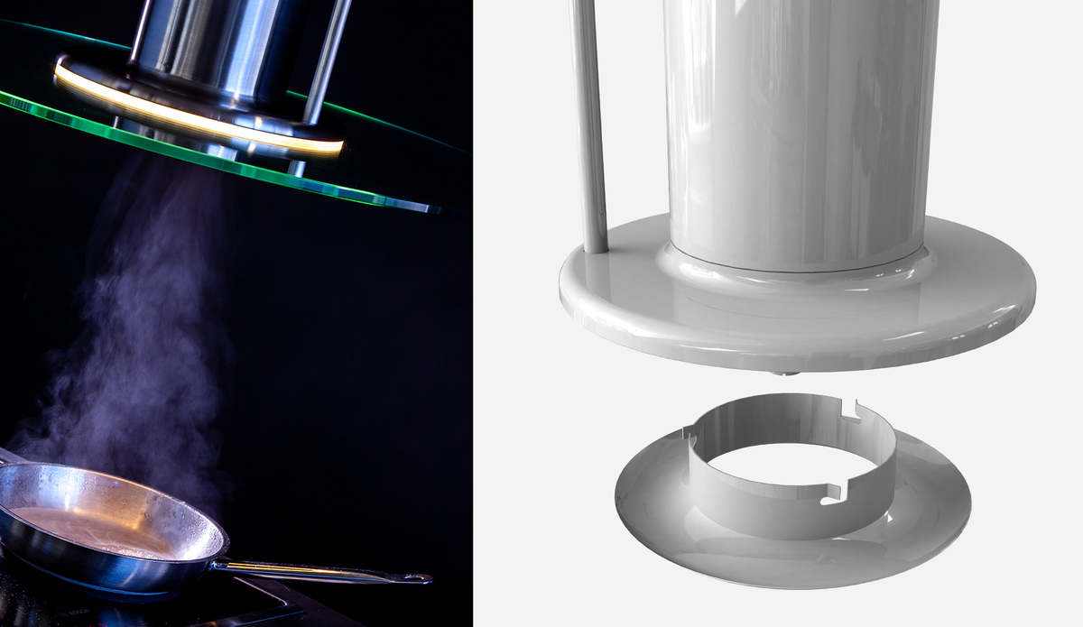 The round Jet Extraction System JES-RD has been specifically designed to provide a high efficiency extraction for cooking appliances fitted at the guest tables such as Korean barbecue. Also suitable for front cooking areas or architectural cooking concepts equipped with low to medium duty, induction, and other tabletop equipment.