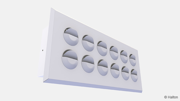 Die Düsen des Auslasses richten das Strömungsprofil schräg in die Richtung der Decke.