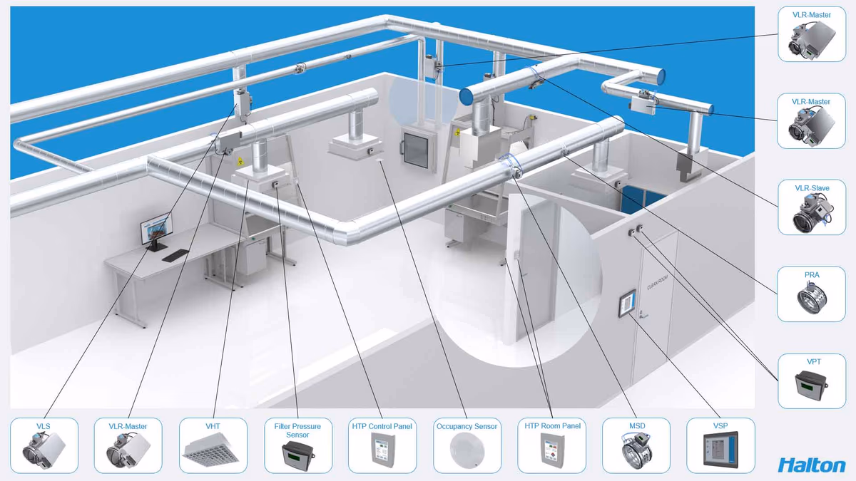 Die Reinraumlösung von Halton Vita erfüllt die hohen Anforderungen an Reinräume, um die Sicherheit des Personals und des Prozesses zu gewährleisten. Das Reinraumkonzept von Halton Vita umfasst die vollständige Lieferung des Reinraumlebenszyklus: