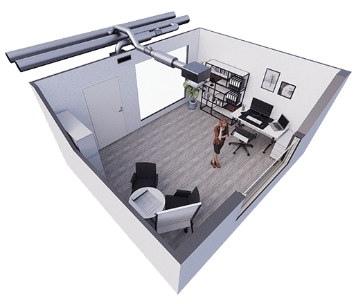 - Controlling the ventilation airflow, room temperature, and indoor air quality in office spaces and meeting rooms