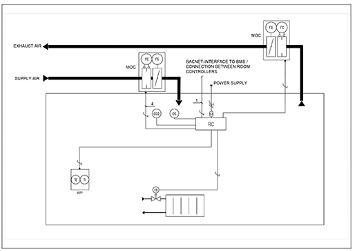 - Room air conditioning applications with Halton Workplace WRA room automation controller: