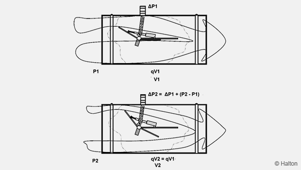 Kun dynaaminen paine kanavahaarassa kasvaa, säätöpelti kääntyy ilmavirtaa vastaan, jolloin painehäviö suurenee estäen virtausmäärän kasvamisen. Vastaavasti kun dynaaminen paine alenee, jousi palauttaa säätöpellin auki-asentoon, jolloin painehäviö pienenee ja virtausmäärä pysyy vakiona.