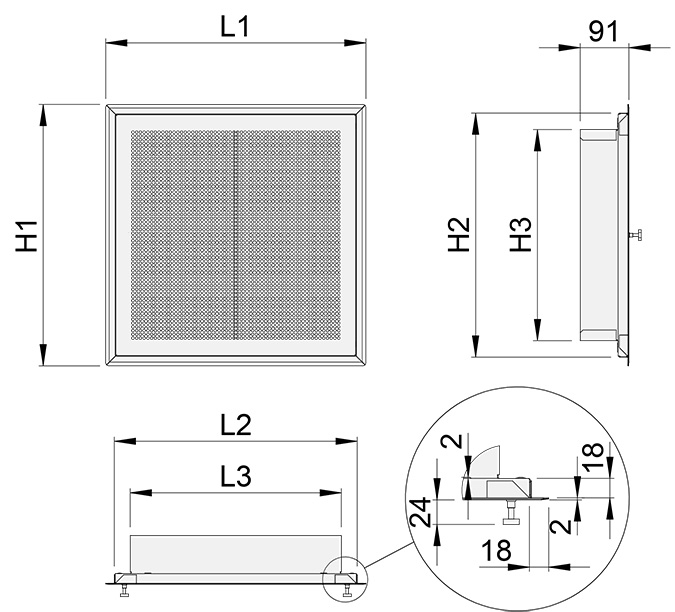 Vakiomallisen laitteen poistoilmasäleiköissä on ruostumattomasta teräsverkosta valmistetut nukkasuodattimet. Verkon vakiokoko on 0,2 mm.
