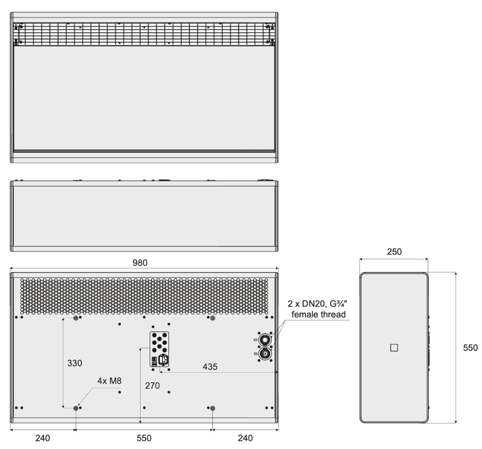 | Lämmönsiirrin | Kupari (3/8″), alumiini, G1″ kierre, maks. 6 bar/100 °C. |