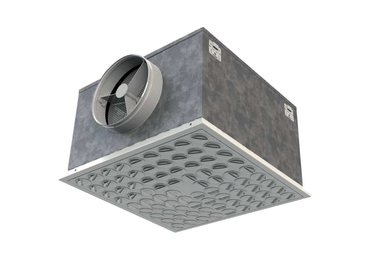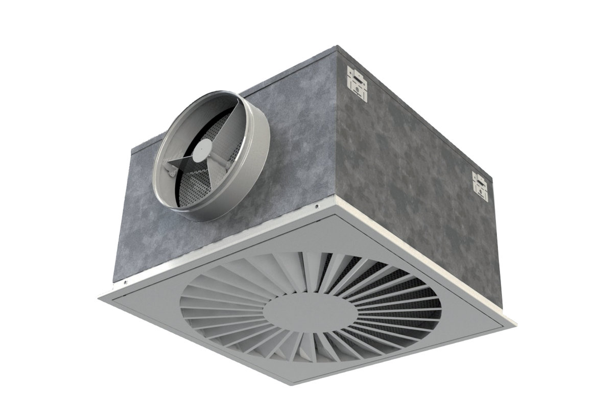 L’air est diffusé avec effet de plafond dans le local à travers la façade du diffuseur.