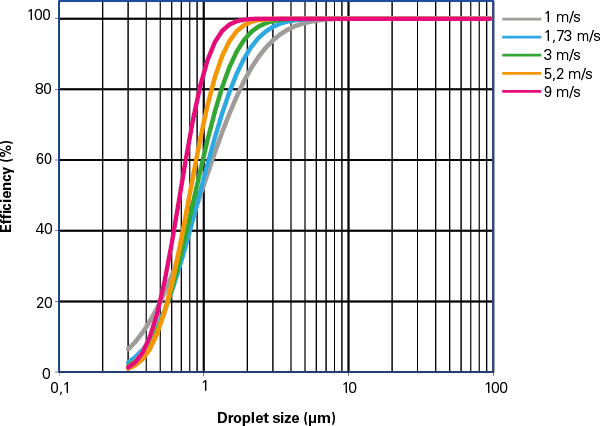• Independent droplet removal efficiency testing carried out for single-stage, two-stage and three-stage configurations