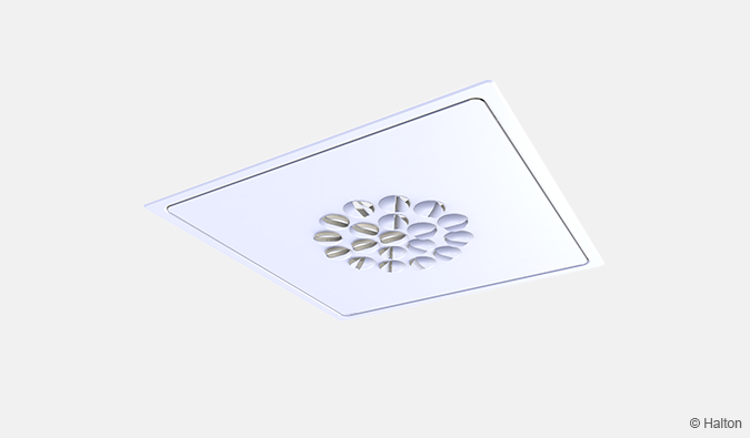 Fig. 7. Diffuseur Halton Jaz JMC raccordé à un plénum Halton Pop PDI