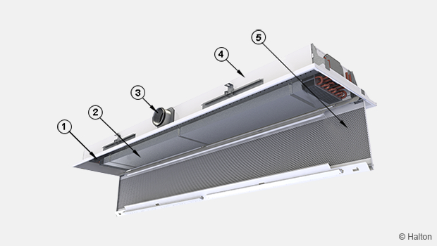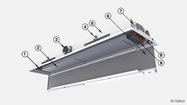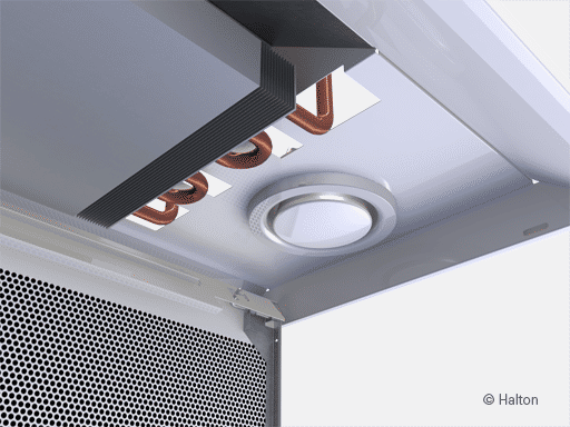 - Débit d’air variable, réglable individuellement en fonction des modifications d’aménagement, grâce au système de contrôle de la qualité d’air Halton (HAQ)