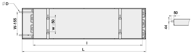 | W = largeur [mm] | 300, 400, 600 |