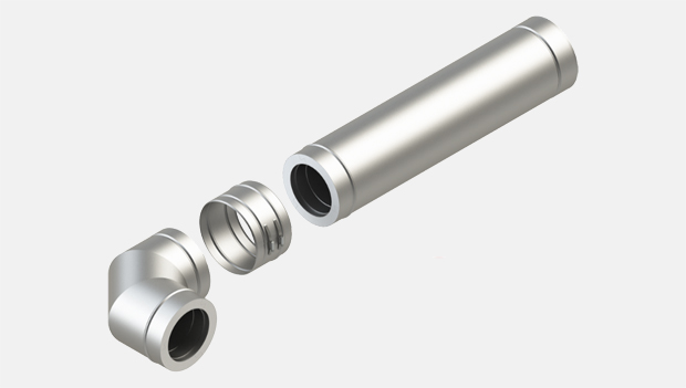 All-stainless supports, guides, hangers, adapters – over 25 accessories per each diameter