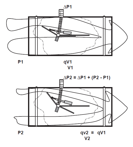 Si la pression dynamique de la branche de gaine augmente, le volet tourne, ce qui augmente la perte de charge et empêche le débit d’augmenter sensiblement. Inversement, si la pression dynamique de la branche de gaine diminue, le ressort ramène le volet en position ouverte, ce qui diminue la perte de charge et maintient le débit constant.