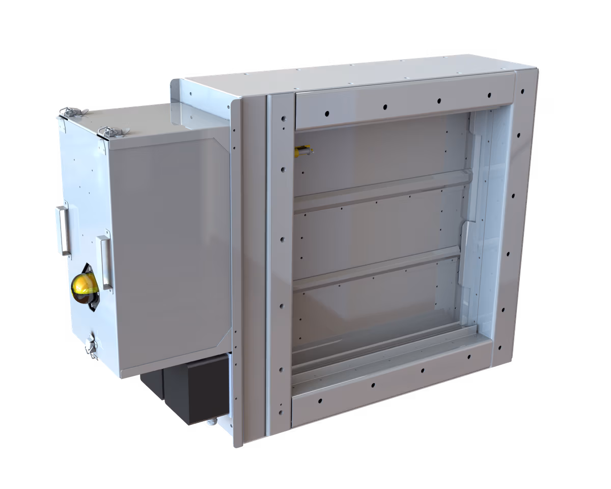 - Blades contain stainless spring steel seals for low leakage in normal conditions and thermal expansion graphite seals (effective from 150 ºC) to seal the damper in case of fire