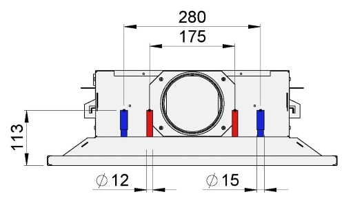 Cooling and heating copper water pipe connections are Ø 12 mm with normal pressure drop. With low pressure drop, cooling water pipe connection is Ø 15 mm and heating Ø 12 mm. (see “Dimensions and weight” section) |