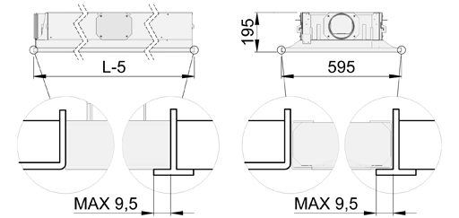 | Integrated exhaust valve | EX = A | Integrated exhaust valve located in the front end of the chilled beam | Effective coil length L – 500 mm |