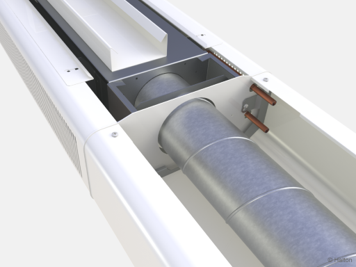 Halton Velocity Control (HVC) is used for adjusting room air velocity conditions either when room layout is changed (e.g., in cases where the chilled beam is located near the partition wall) or when local, individual velocity conditions need to be altered. Halton velocity control adjustment has an impact on the induced room airflow through the heat exchanger, and therefore it either increases or decreases both the velocities in the occupied zone and the cooling/heating capacity of the chilled beam.