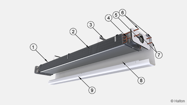 The Halton Rex REE unit is an active chilled beam for exposed installation.