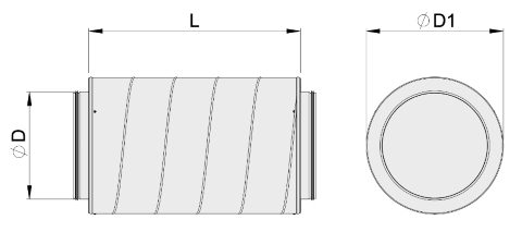 Silencers made of pressed lid for D1 = 100 … 250 mm