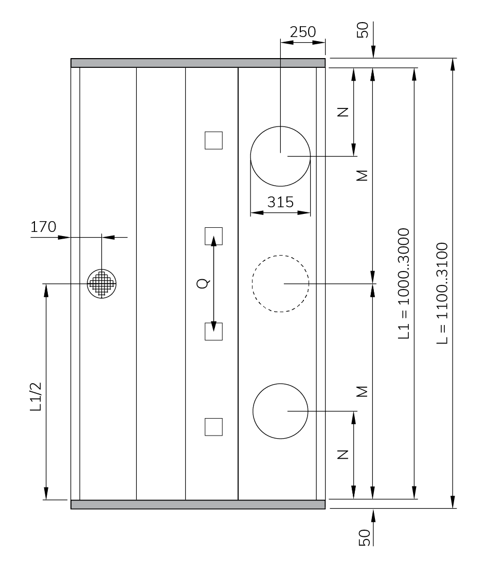 – Above 3100 mm, hoods are an assembly of separate sections to make transportation and site handling easier.