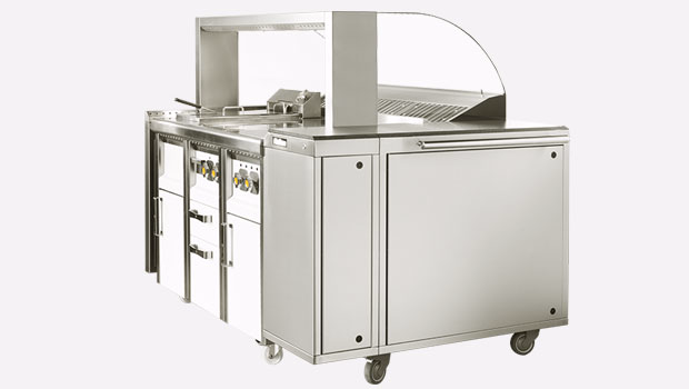 Halton MobiChef is designed for electrical cooking appliances. It is equally suitable for table-top light-duty equipment or modular equipment (up to 5 of 400 mm width).