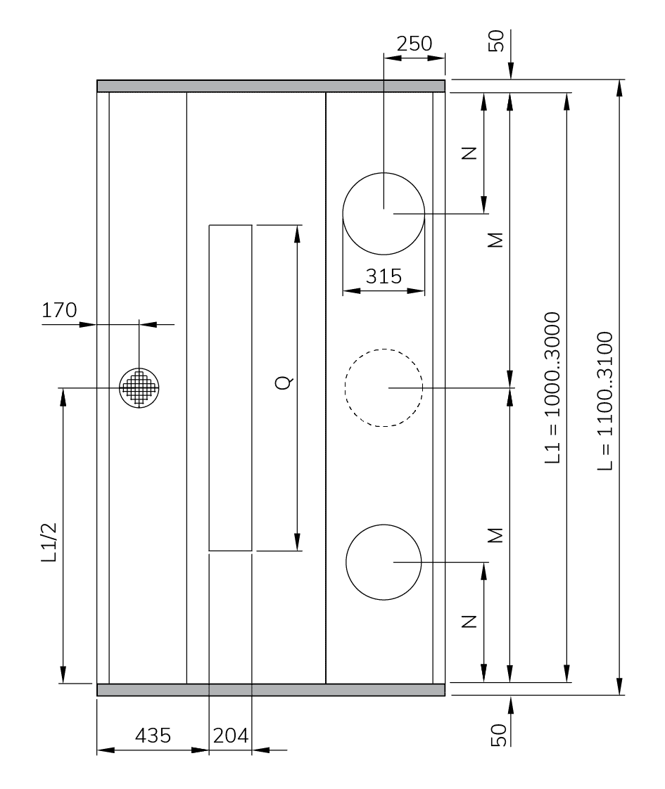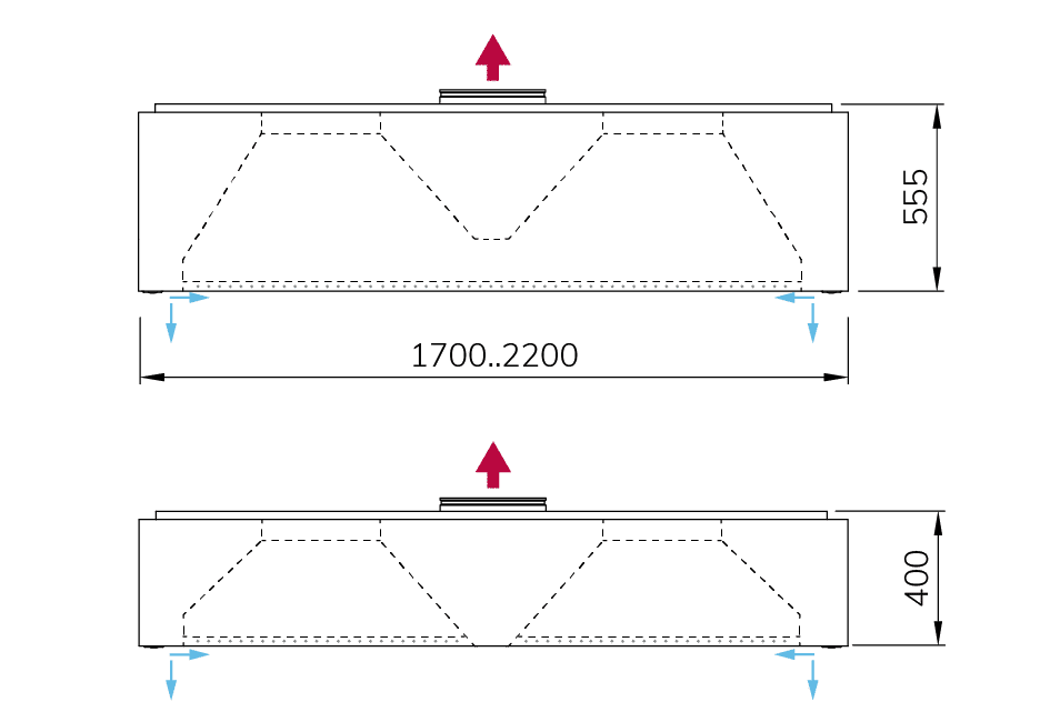 • Above 3100 mm, hoods are an assembly of separate sections to make transportation and site handling easier.