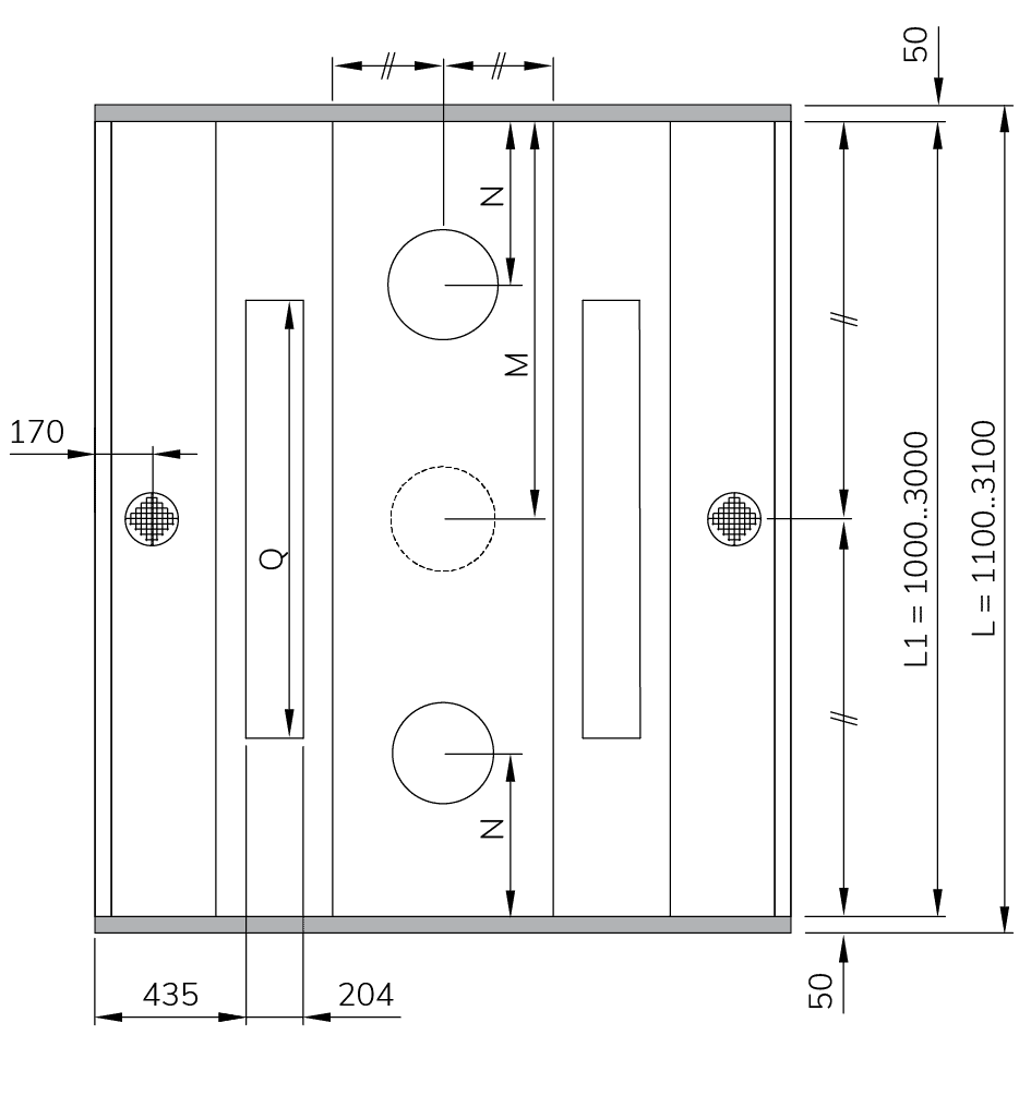 • Number of connections to be determined based on the sections length and on the calculation of the airflow rates.