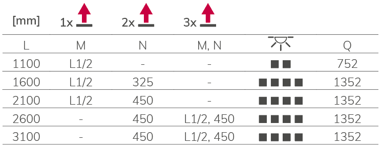 15. [Option] Halton Skyline LED spots integrated on a full length and flush-mounted.