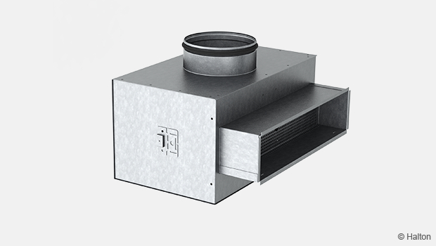 The Halton PRL balancing plenum for grilles is made of galvanised steel and has a robust and airtight construction.
