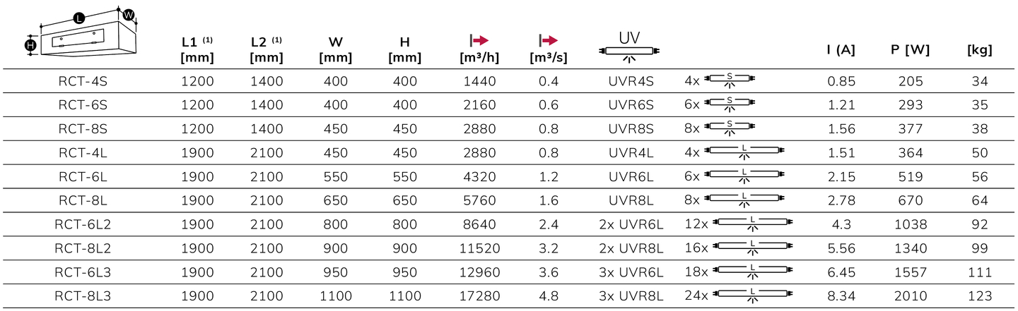 - UV racks. Number of racks and lamps per rack according to customer service.