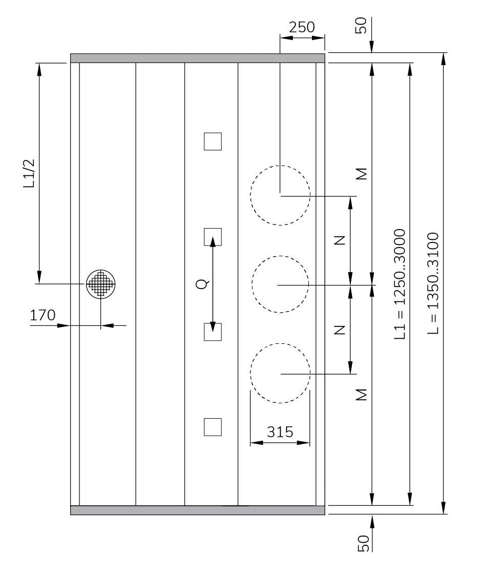 – Number of connections to be determined based on the sections length and on the calculation of the airflow rates.