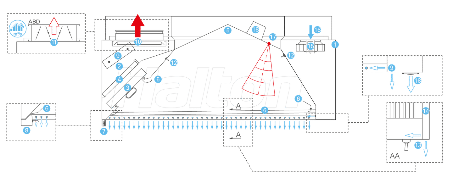 - Halton IRIS™ infrared sensor (used for the optional M.A.R.V.E.L., UV on Demand or FireWatch technologies). (used for the optional M.A.R.V.E.L. or UV on Demand technologies).