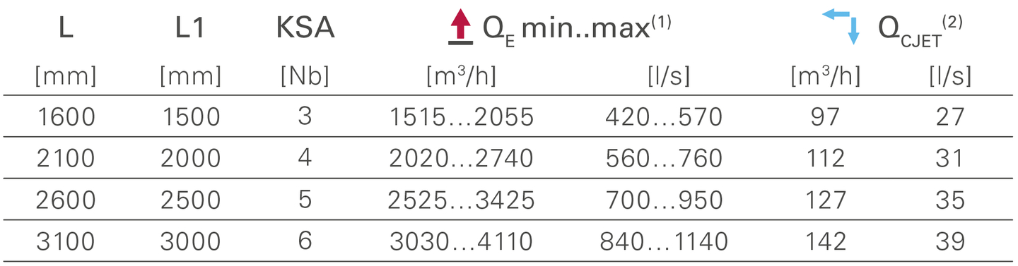 (1) QE Min..Max/KSA = 505..685 m3/h | ∆PT.A.B. Min..Ma = 50..91 Pa