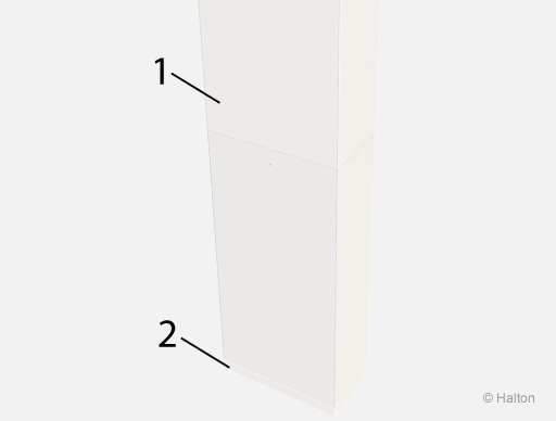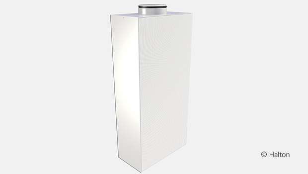 The Halton Zen ZRE displacement ventilation supply unit is made of galvanised steel, polyester-epoxy-painted with a white (RAL 9003) colour.