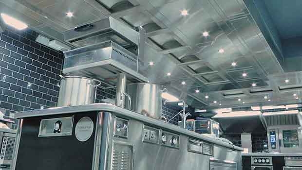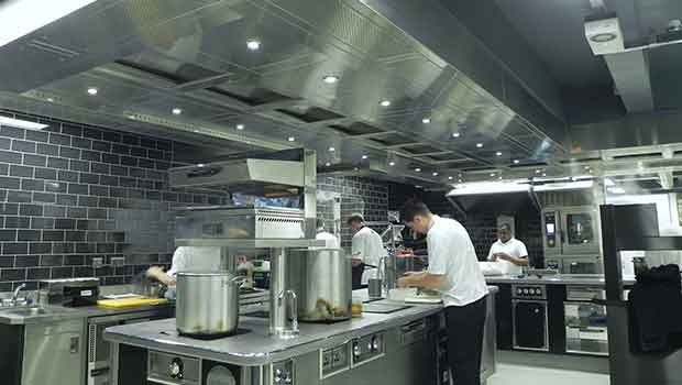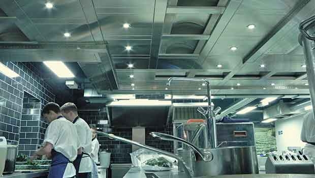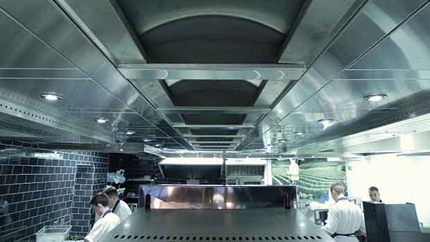 The structure of the building was not lending itself to traditional hood selection, so Halton Cyclocell Ceiling and Capture Jet solution was employed to create this bespoke solution, offering the client an efficient system whilst delivering a high quality finish.