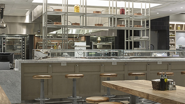 Next Step Design’s Lead Designer and Principal, Russell Stilwell, FCSI, took this inspiration and helped create a visual and culinary showcase. Located at Saks Brickell City Centre in Miami, Florida the venue encompasses 18,000 square feet of a luxury European style, Italian themed food hall. The diverse menu of Italian and Mediterranean fare, including homemade pasta dishes, pizza, charcuterie, grilled meats, fresh juices, salads, gelato and baked good required host of specialized cooking equipment. The exhaust ventilation system also needed to be flexible, quiet and energy efficient.
