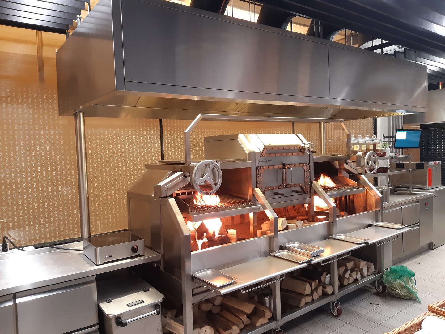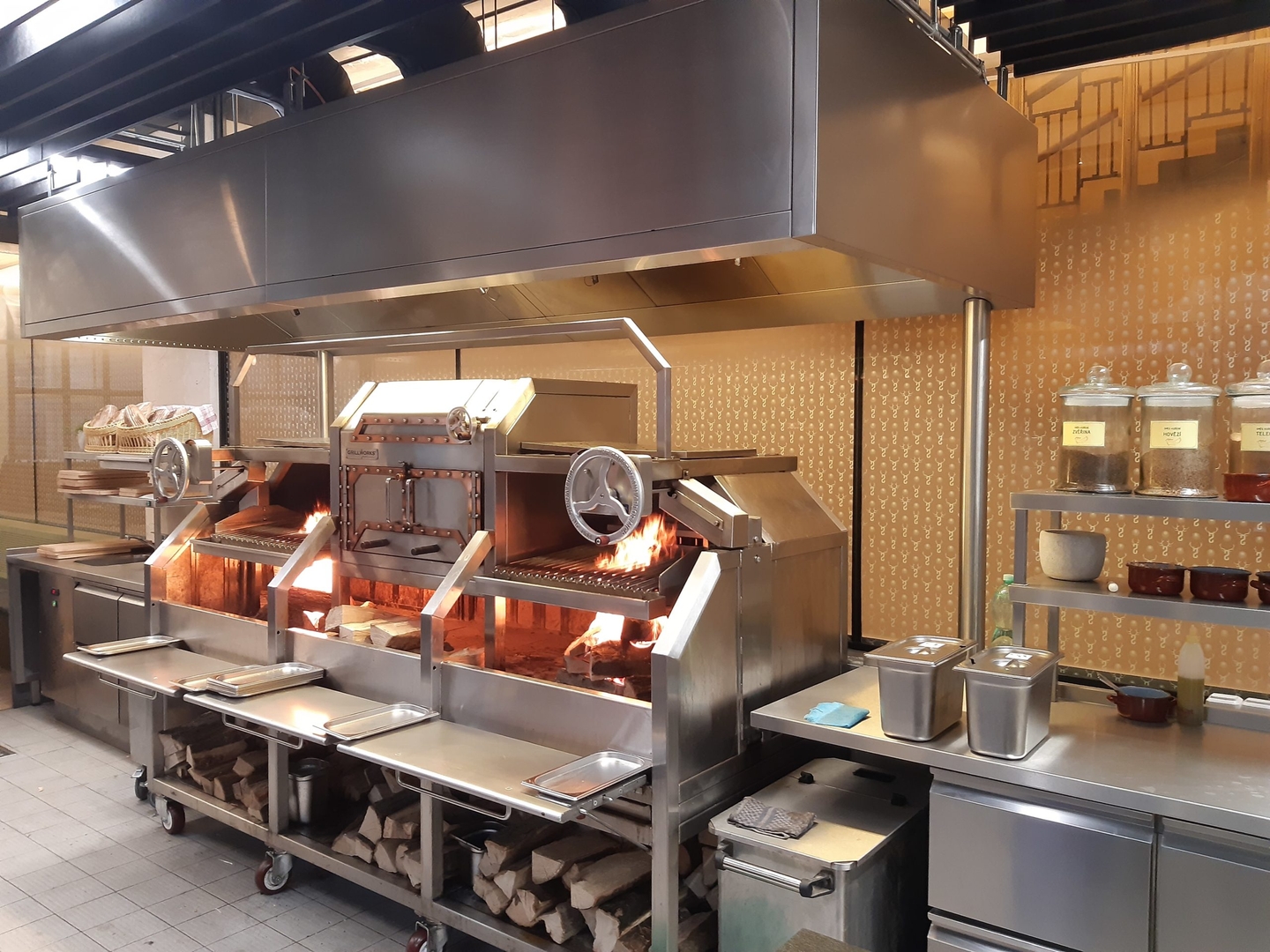 Heavy duty cooking appliances such as this charcoal oven have always been challenging for the fire safety.