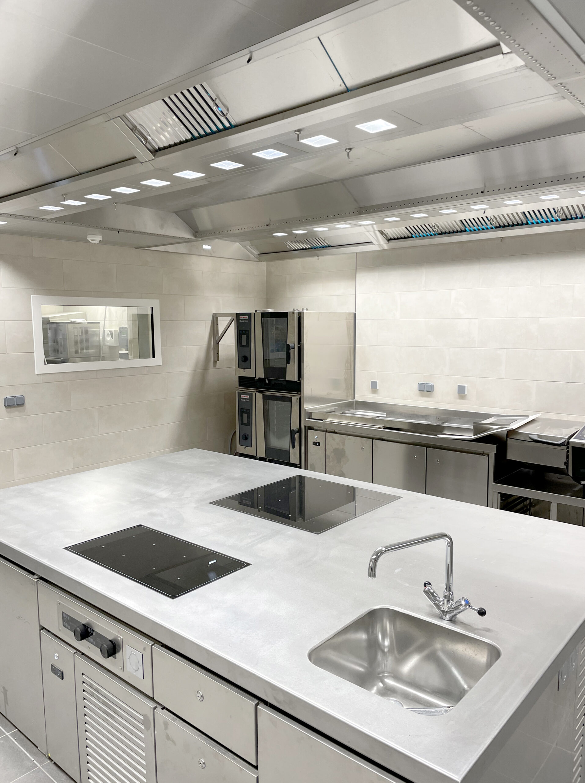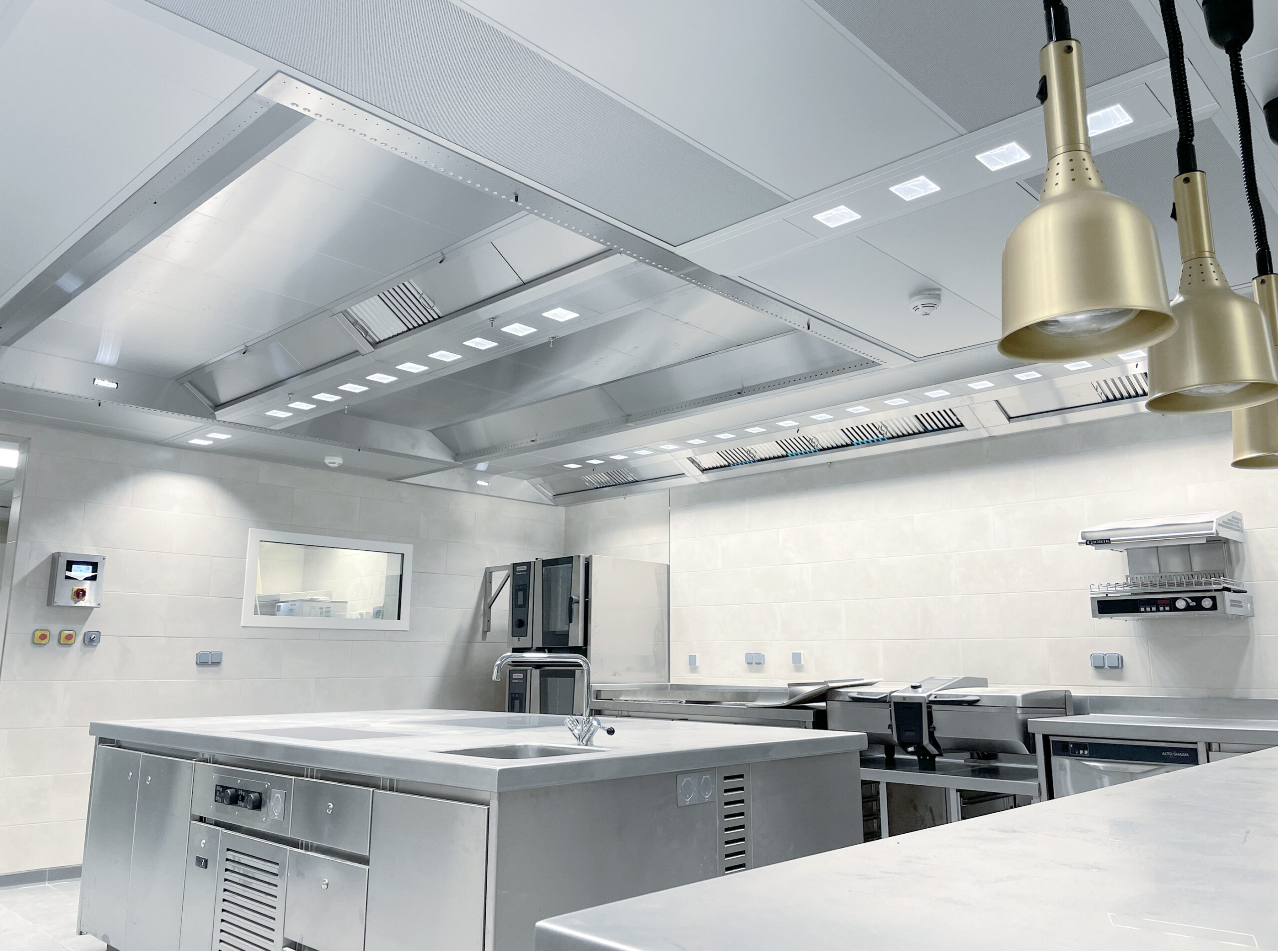At the heart of their exceptional kitchen, we installed the Halton KCJ-UV ventilated ceiling. This system not only ensures a pristine working environment by efficiently capturing smoke, grease, and heat, but also features integrated UV Capture Ray technology. This innovation keeps the plenum and ductwork virtually grease-free and reduces cooking odour emissions.