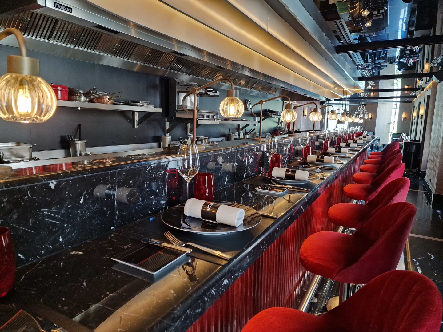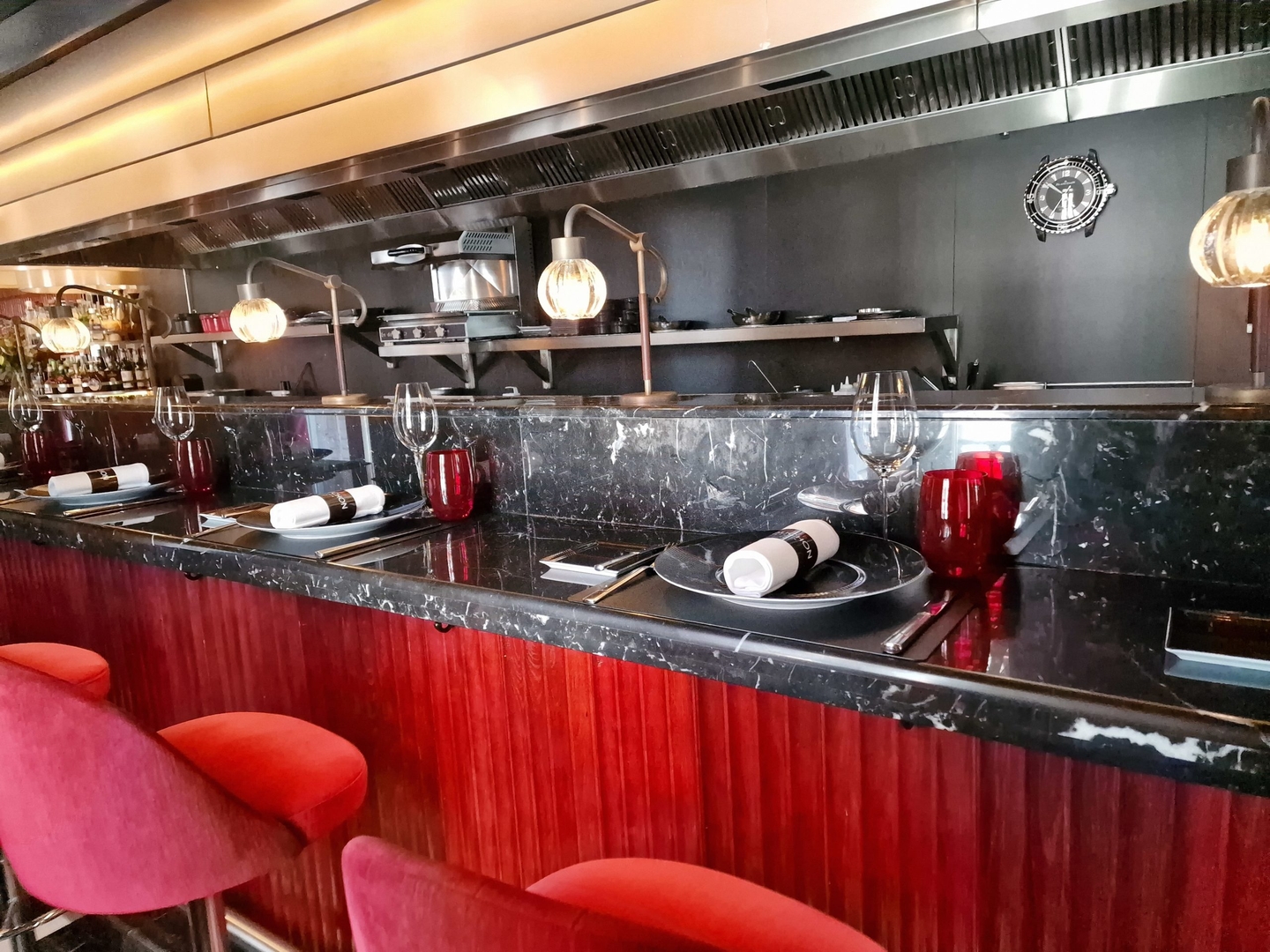 L’Atelier Robuchon, on the first floor is home to an open kitchen restaurant.
