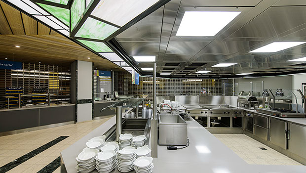 Marais in Brussels has chosen Halton Solutions for the ventilation of their kitchens. This is the canteen of Marais Headquarters