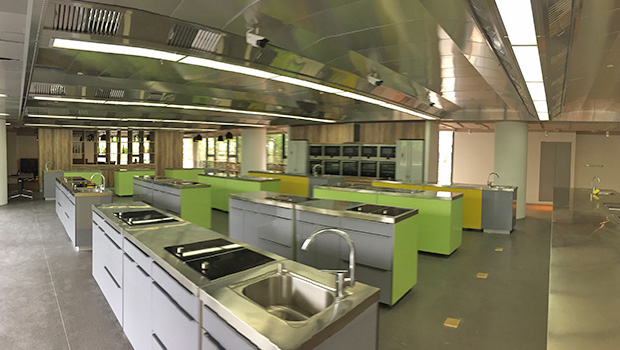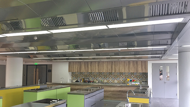 A 140 m² KJC vetilated ceilling is istalled in one of the coocking classes.