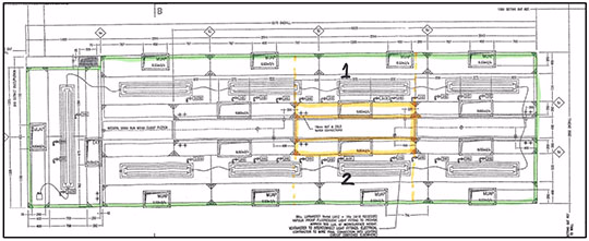 Figure 6.5.1 shows the trial kitchen canopy selected for the site trial. Two adjacent sections of canopy were selected, each covering the same cooking equipment and both connected to pipework with the same distance from the hydraulic panel. Each section has 10 cold mist spray nozzles.