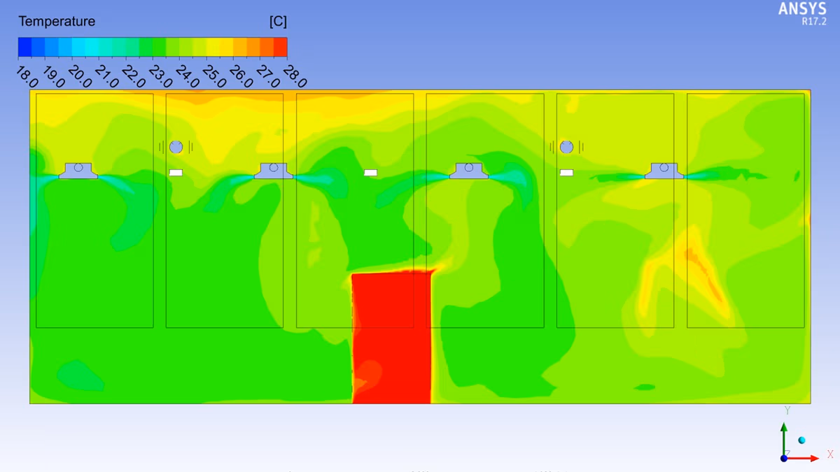 Halton Innovation HUB erbjuder tjänster inom computational fluid dynamics (CFD, datorflödesdynamik) för att simulera inomhusklimatförhållanden och optimera dem. CFD är lämpligt för ett brett utbud av inomhusmiljölösningar och är särskilt användbart när fysiska tester är svåra att organisera. Förmågan att producera exakta simuleringar med Haltons CFD-modeller har validerats genom att jämföra dem med faktiska laboratoriemätningar. Möjligheten att använda exakt information om konstruktionen av och dimensioner för Haltons produkter är en viktig faktor för att skapa korrekta resultat.