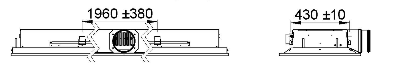 Montera kylbaffeln direkt mot takytan (H1 = 195 mm) eller häng upp den i gängade stänger (8 mm). Fästpunkterna är placerade enligt ritningarna (beroende av enhetens längd).