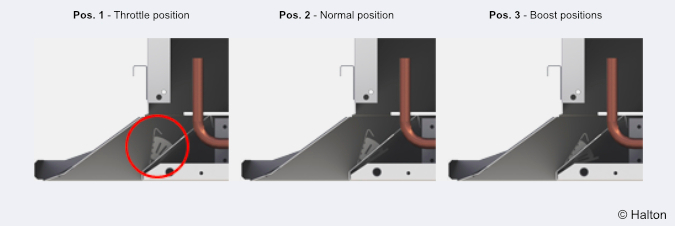 Vi rekommenderar att kylbaffeln placeras i normal position, för att möjliggöra både stryp- och ökningsfunktioner under byggnadens livslängd.