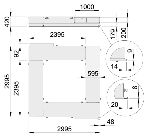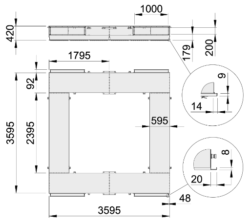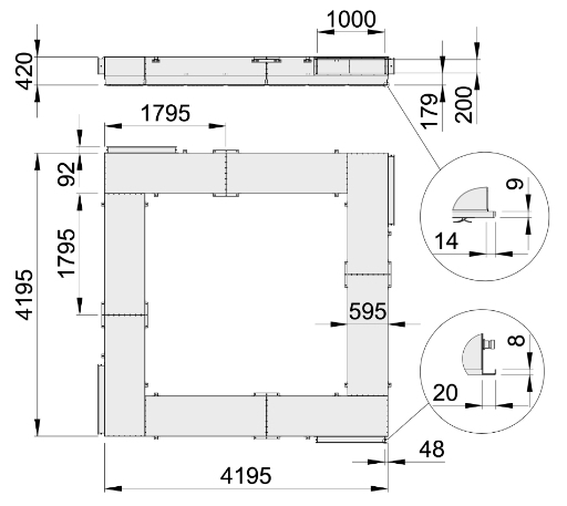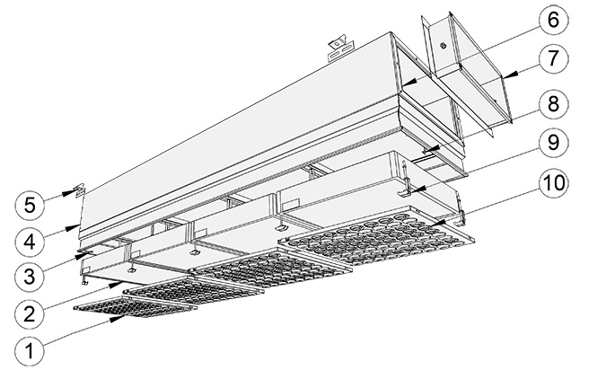 - Tilluftsenhet för Halton Vita OR Space 5 bestående av 4–8 moduler som bildar en fyrkant eller en rektangulär enhet