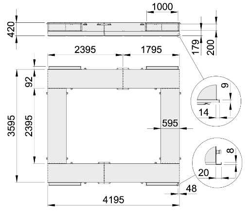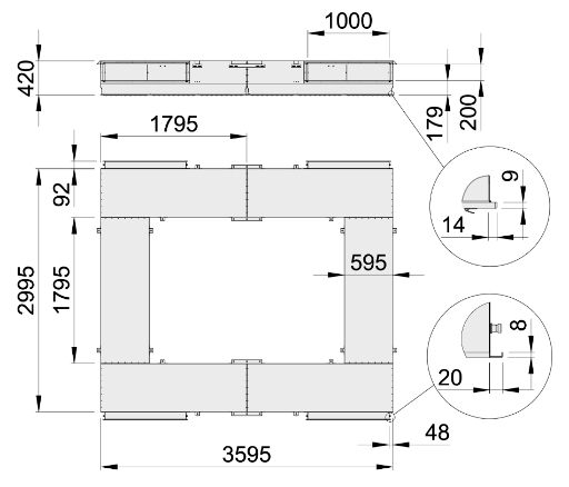 Halton Vita VSN/B for Halton Vita OR Space 7 consists of 2 parallel units. The parallel units consist of 1 or 2 modules. The distance (S=1200…2400) between the parallel units is specified separately for each project.