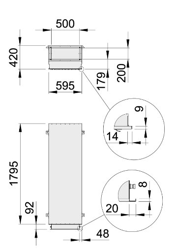 | 1 | Frontplåt | Stål, ¤)antibakteriell pulverlackerad epoxipolyester (vit RAL 9003/30%) |