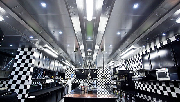 Haltons LED-baserade belysningssystem är särskilt och exklusivt utformat för professionella kök, vilket gör det till den första köksbelysningen. Det gör det möjligt att justera den allmänna belysningen mellan 500 och 750 lx, medan specifika zoner kan ha en belysningsstyrka på 1 000 lx, särskilt i områden med kvalitetskontroll, t.ex. utloppet på en diskmaskin.