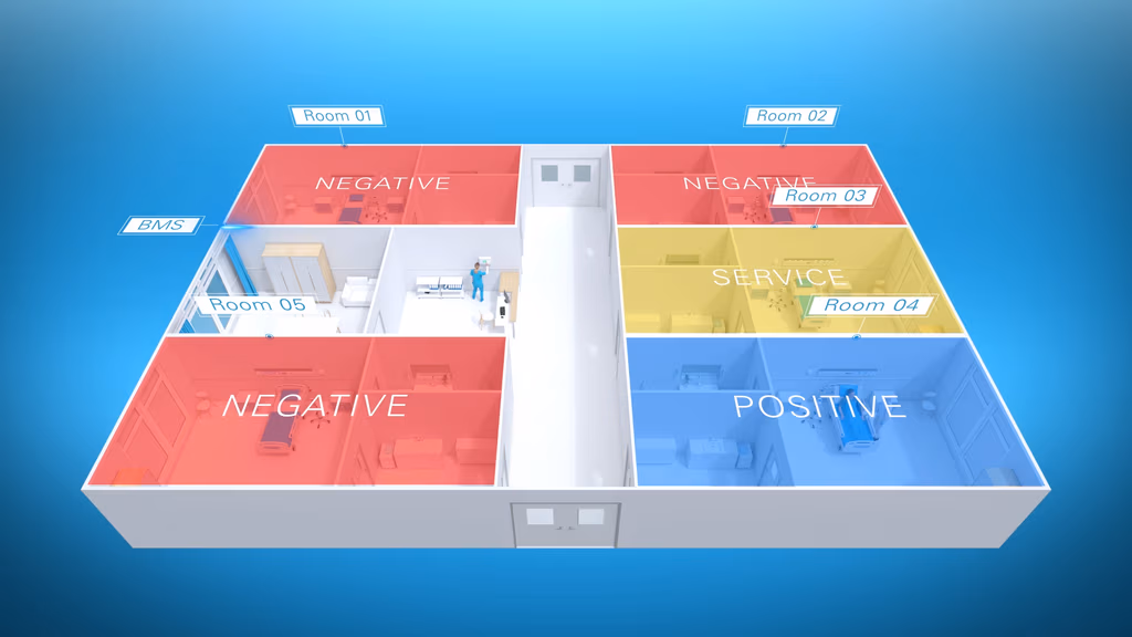 Unlike standard systems, Halton Vita Iso is engineered for critical care and isolation environments. It provides precise airflow control, customizable pressure settings, individual room management, and integrated alarms—all designed to meet strict healthcare ventilation standards.